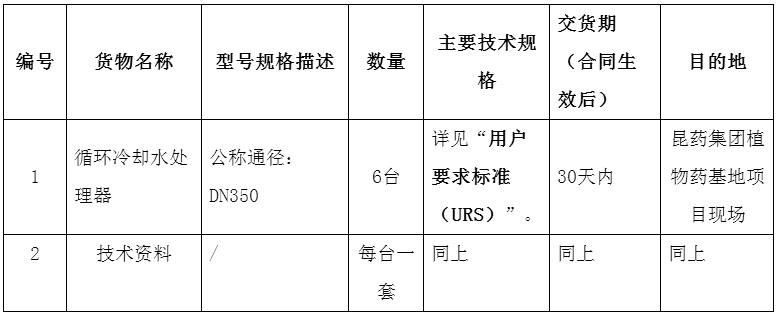 PP电子集团植物药基地项目循环冷却水处理器设备采购招标公告