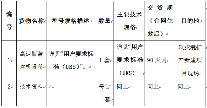 PP电子集团软胶囊扩产新建项目高速瓶装盒机设备采购招标公告