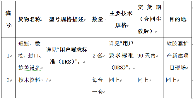 PP电子集团软胶囊扩产新建项目理瓶、数粒、封口、旋盖设备采购招标公告