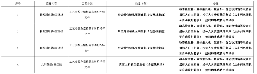 昆明中药厂有限公司中药现代化提产扩能建设项目(一期) 多列四边封包装连线设备采购招标公告