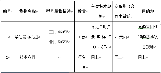 PP电子集团植物药基地项目柴油发电机组设备采购招标公告