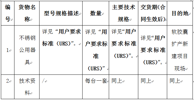 PP电子集团软胶囊扩产新建项目不锈钢公用器具采购招标公告