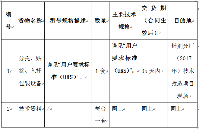 PP电子集团针剂分厂(2017年)技术改造项目分托、贴签、入托包装设备采购 招标公告