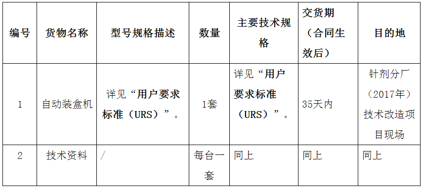 PP电子集团针剂分厂(2017年)技术改造项目自动装盒机设备采购招标公告