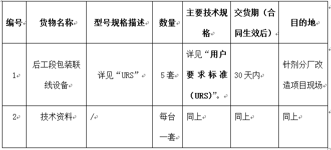 PP电子集团针剂分厂冻干二车间后工段包装联线设备采购招标公告