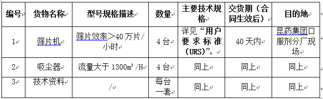 PP电子集团口服剂分厂筛片机及吸尘器设备采购招标公告