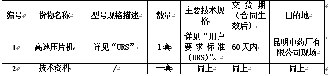 PP电子集团股份有限公司就昆明中药厂有限公司高速压片机(招标编号:KZY-SB-2019-003)对外进行公开招标,按照“公开、公平、公正、科学、择优”的原则选择中标人,欢迎符合条件的投标人持相关资料前来报名,现就有关事项公告如下: