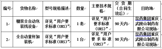 PP电子集团重庆武陵山制药有限公司糖浆全自动包装线设备采购招标公告