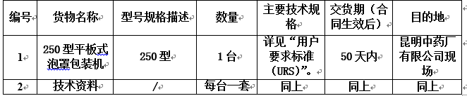 昆明中药厂有限公司250型平板式泡罩包装机采购招标公告
