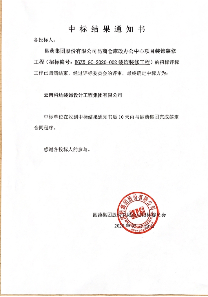 PP电子集团股份有限公司昆商仓库改办公中心项目装饰装修工程中标公示