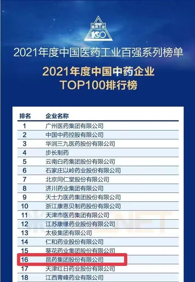 喜报 | PP电子集团荣登2021年度中国中药企业TOP100榜单
